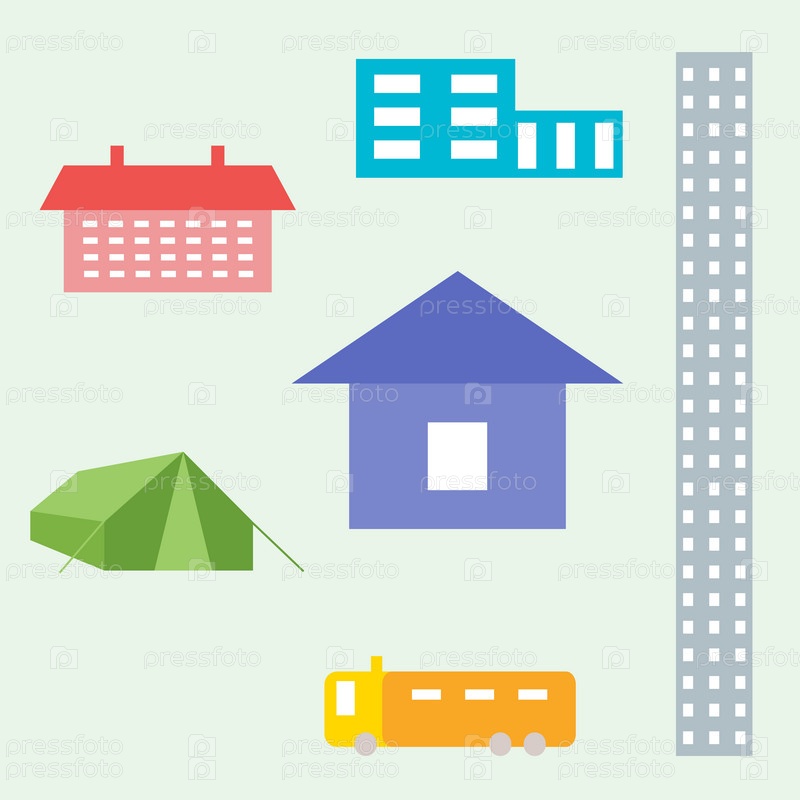 Иконки небоскреба, трейлера, палатки, дома