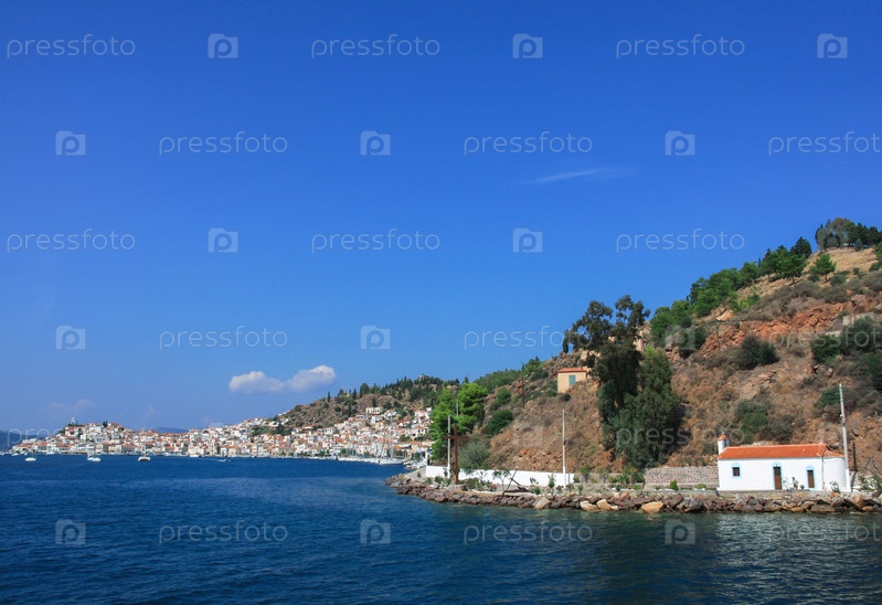 Город и порт на склоне холма в Греции