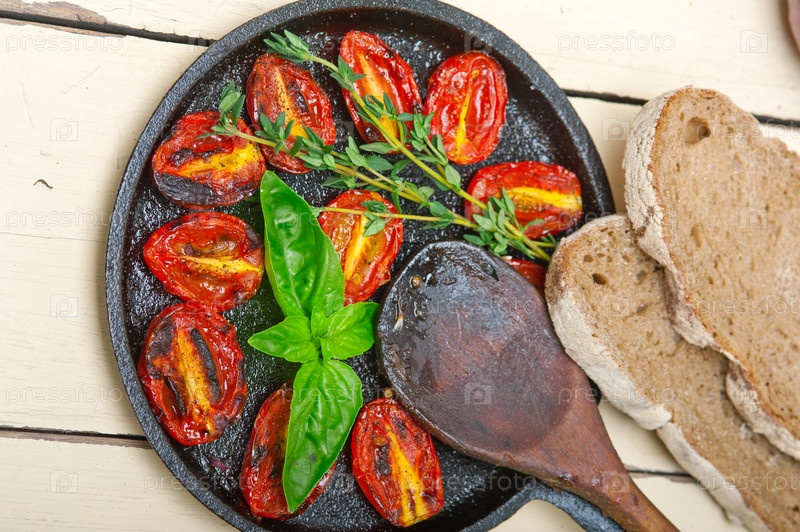 Запеченные помидоры черри с базиликом и тимьяном