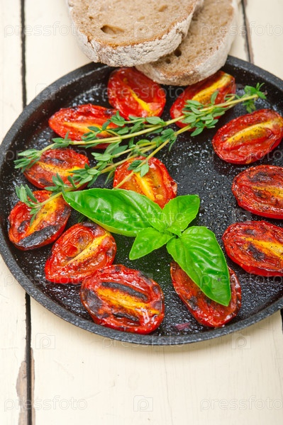 Запеченные помидоры черри с базиликом и тимьяном