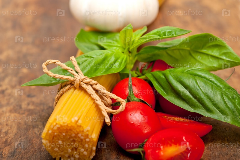 Спагетти с помидорами и базиликом
