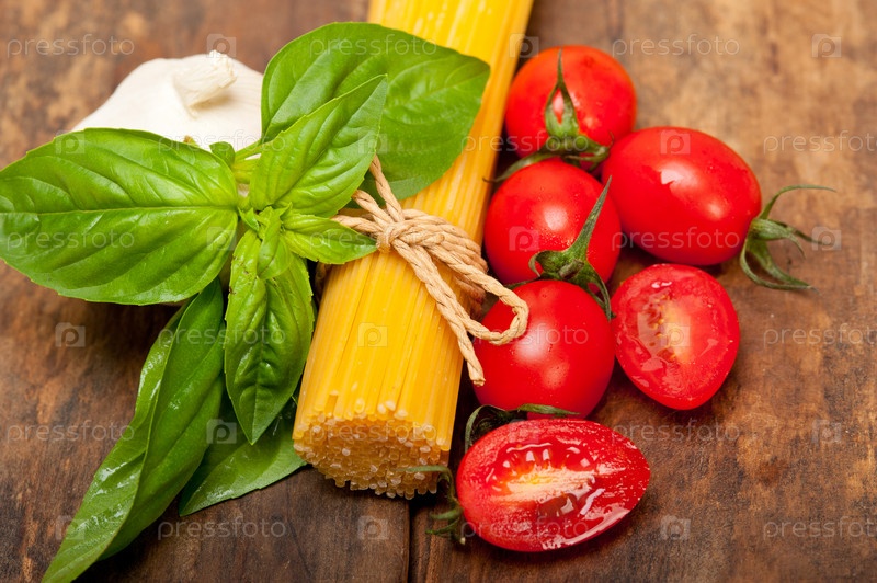 Спагетти с помидорами и базиликом