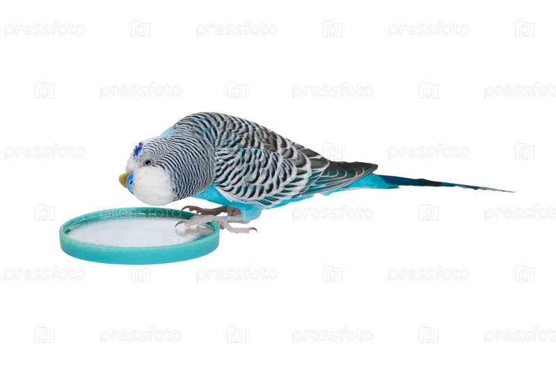 Волнистый попугайчик смотрит в зеркало
