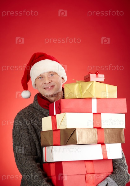 Счастливый мужчина с новогодними подарками
