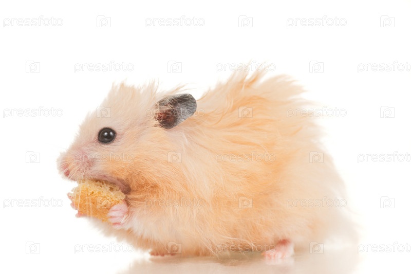 Хомяк грызет сухарь на белом фоне