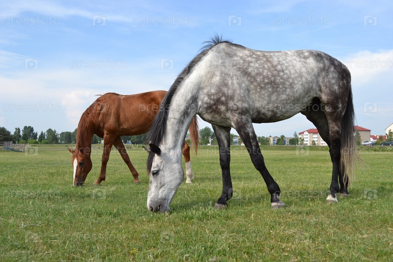 Лошади пасутся на лугу