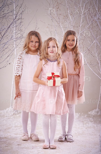 Девочки с новогодним подарком