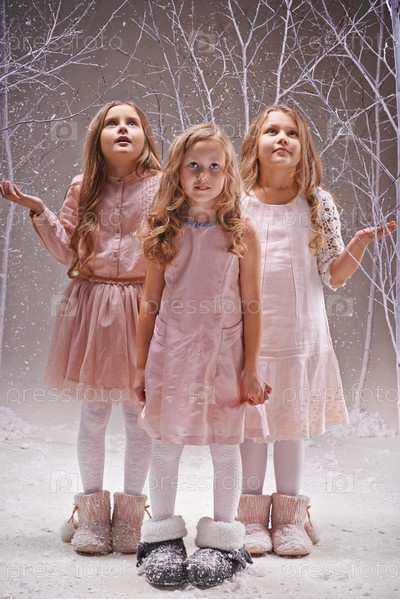 Красивые девочки позируют в сказочном лесу