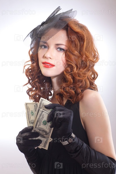 Красивая женщина с долларами в руках