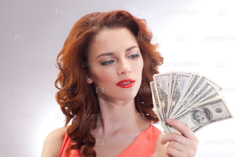 Красивая женщина с долларами в руках