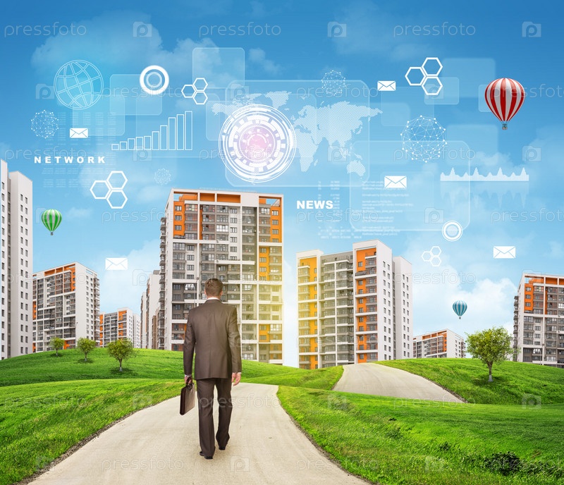 Бизнесмен идет по дороге