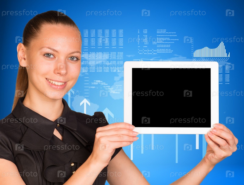 Женщина держит планшетный компьютер