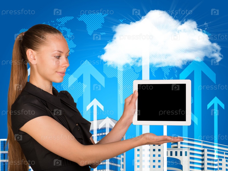 Женщина держит планшетный компьютер