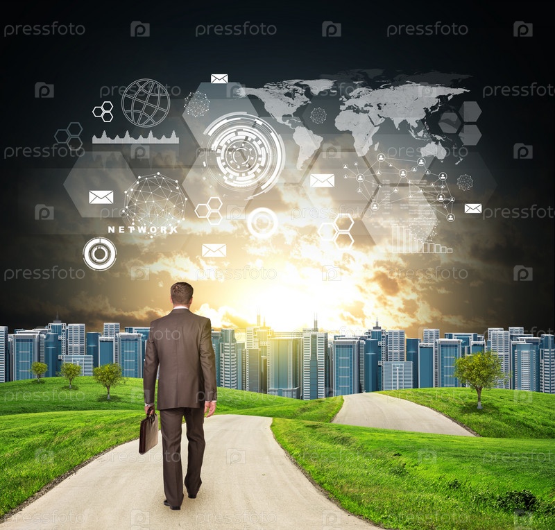 Бизнесмен идет по дороге