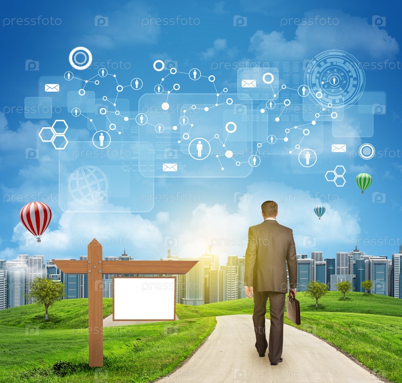 Бизнесмен идет по дороге