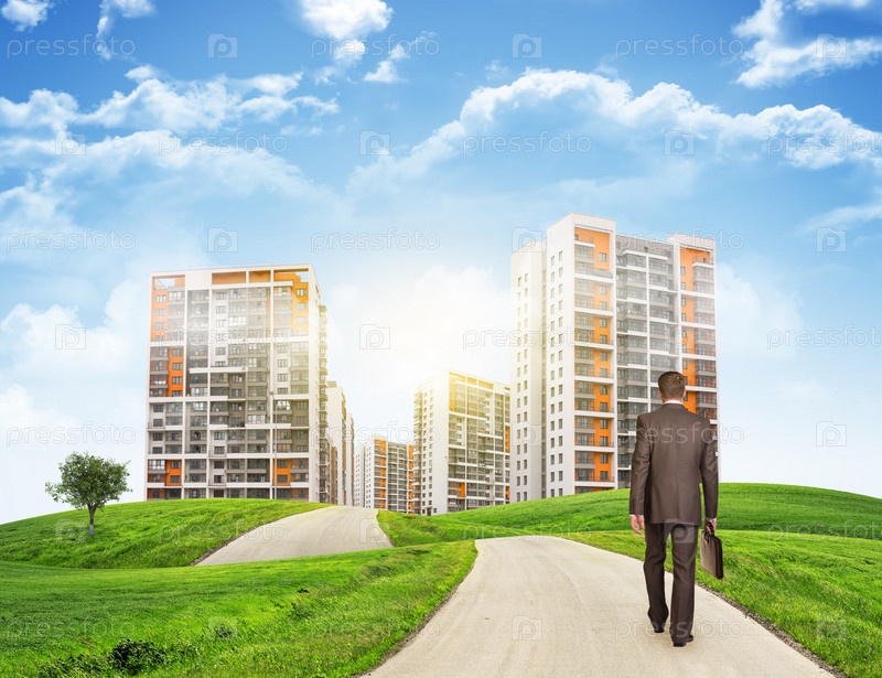 Бизнесмен идет по дороге