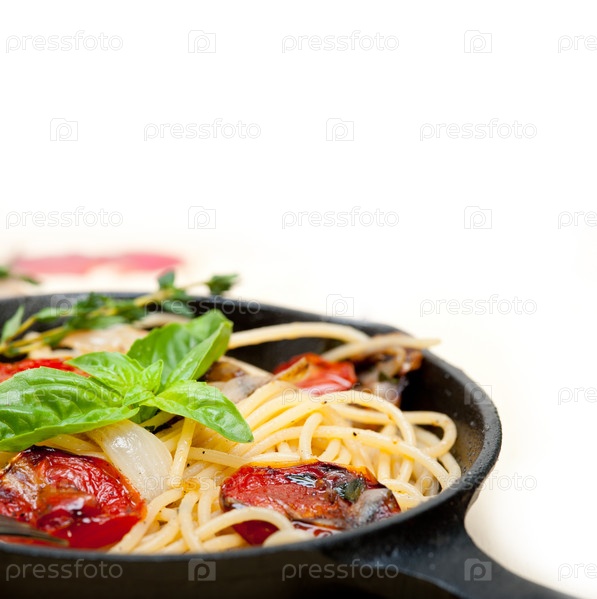 Спагетти с запеченными помидорами