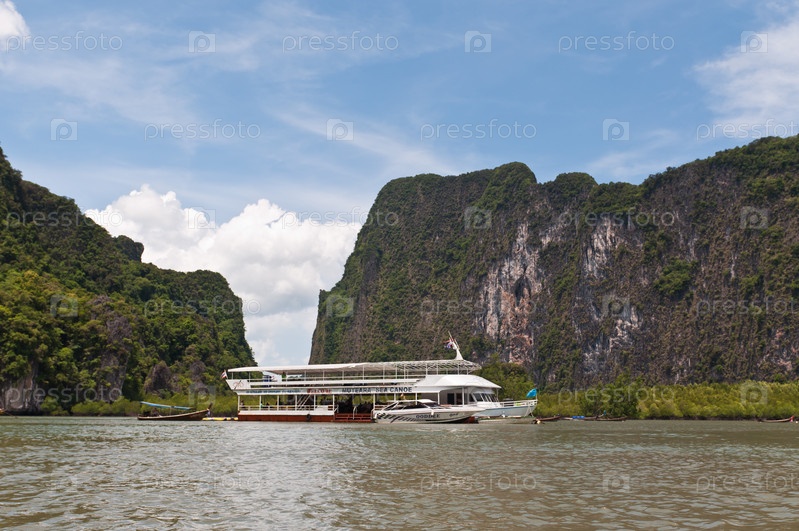 Катер на фоне гор