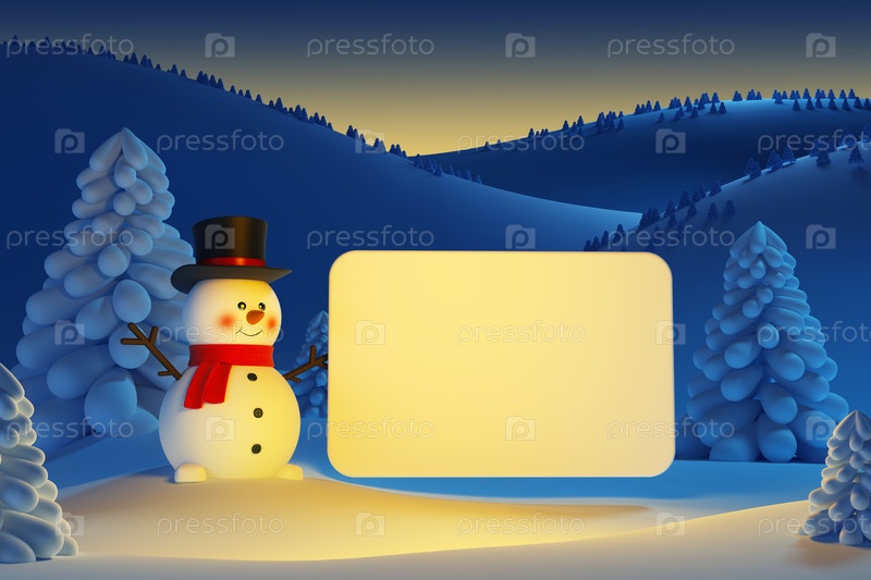 Счастливый снеговик с пустым плакатом