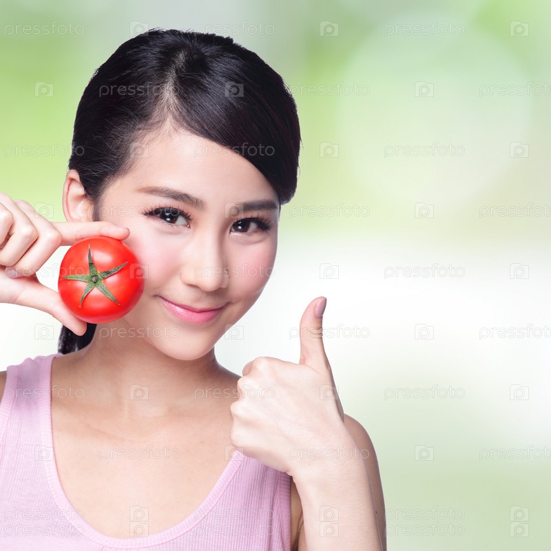 Девушка держит помидор