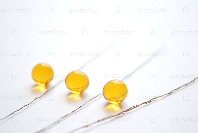 Желтые капсулы на белом фоне