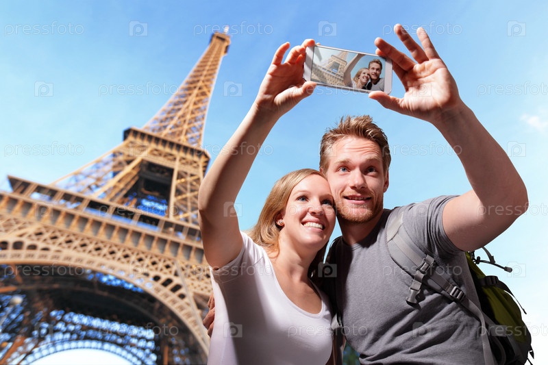 Пара фотографируется в Париже