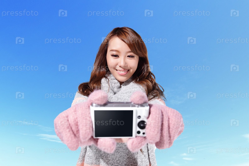 Счастливая девушка с фотоаппаратом