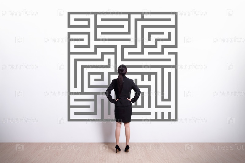Бизнес-леди смотрит на лабиринт