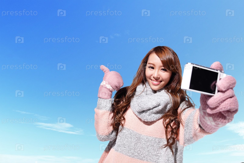 Счастливая женщина с фотоаппаратом