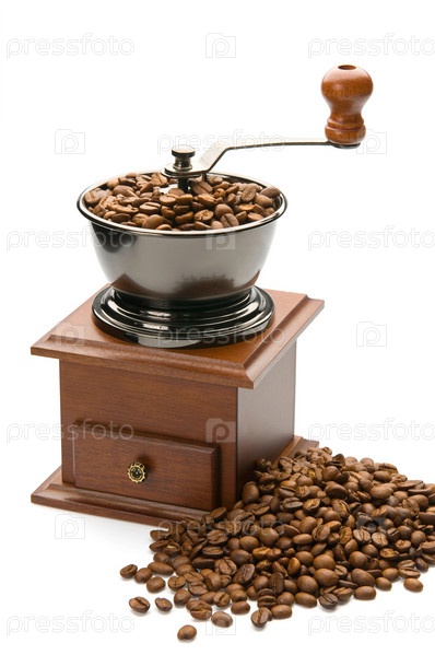 Кофемолка на белом фоне