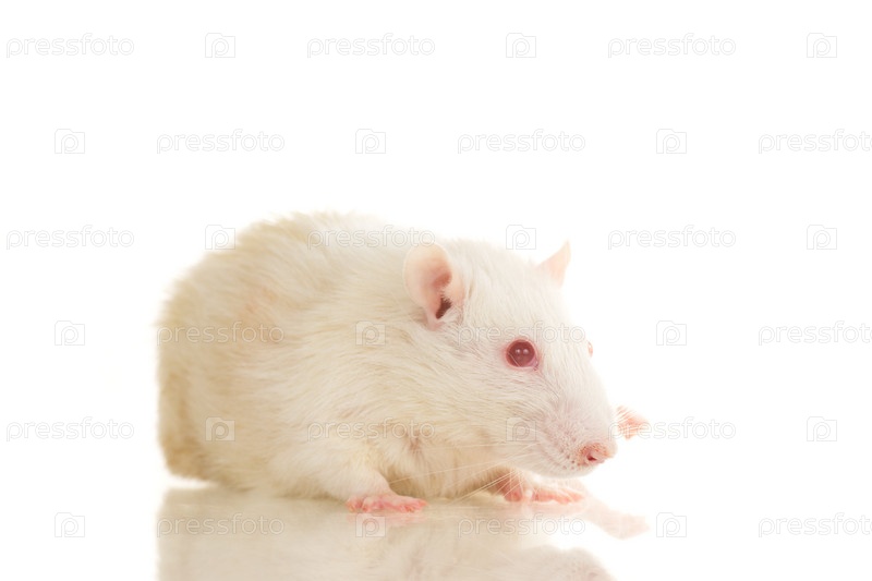 Белая молодая крыса, на белом фоне