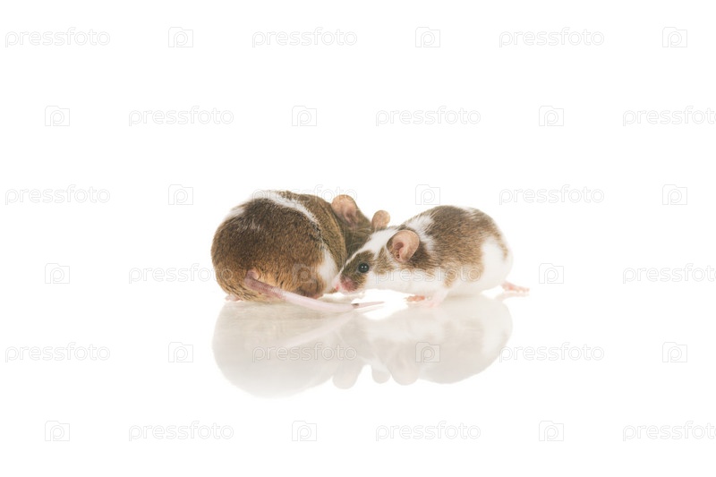 Две серо-белые крысы, на белом фоне