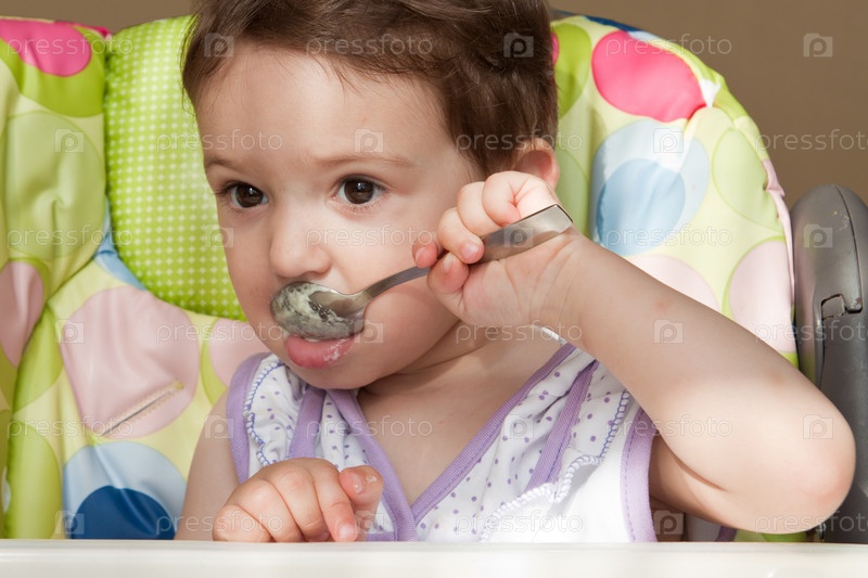 Маленький ребенок самостоятельно кушает