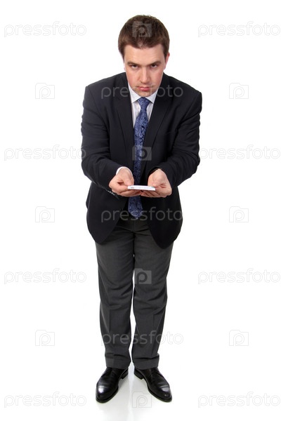 Деловой человек в темном костюме, изолирован на белом фоне