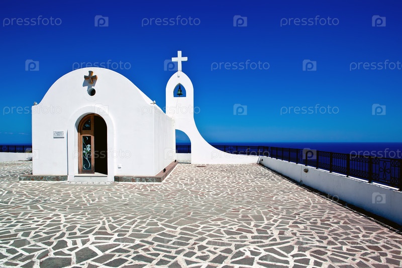 Маленькая белая церковь на острове Родос, Греция