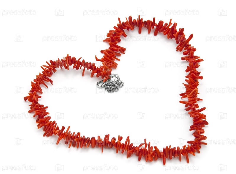 Ожерелье из красного коралла, уложенное в форме символа сердца