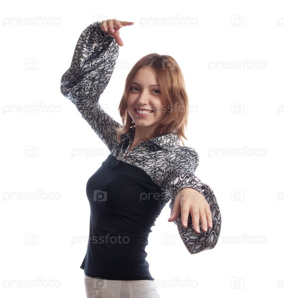 Танцующая женщина на белом фоне