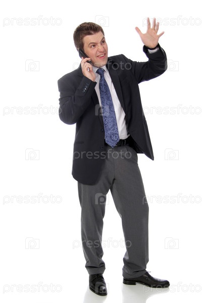 Мужчина в деловом костюме разговаривает по телефону