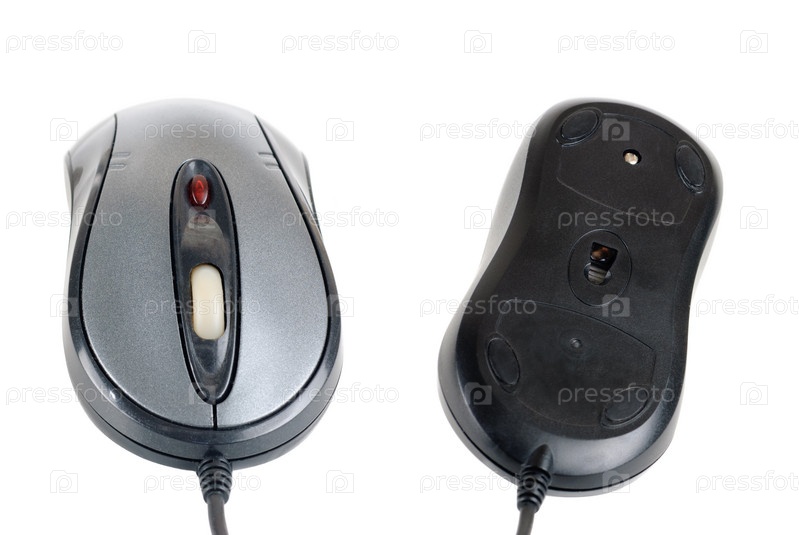 Серо-черные компьютерные мыши, изолированные на белом фоне