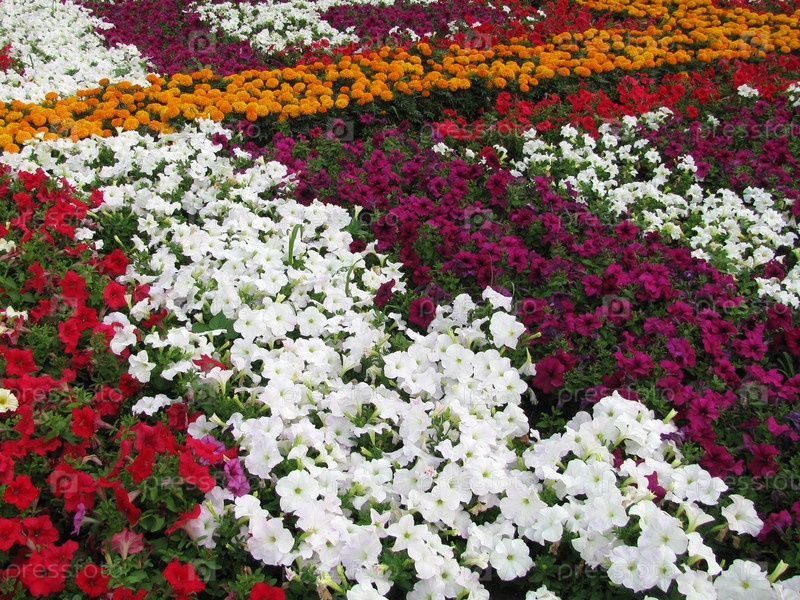 Клумба с разноцветными цветами, фон