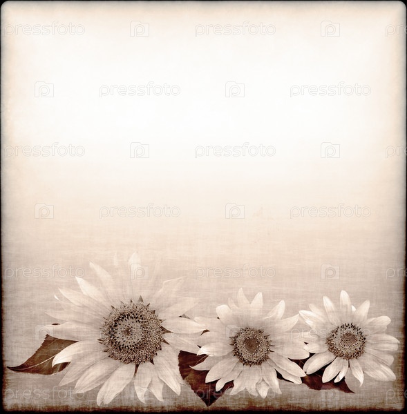Серый фон с рисунком подсолнечника в стиле гранж