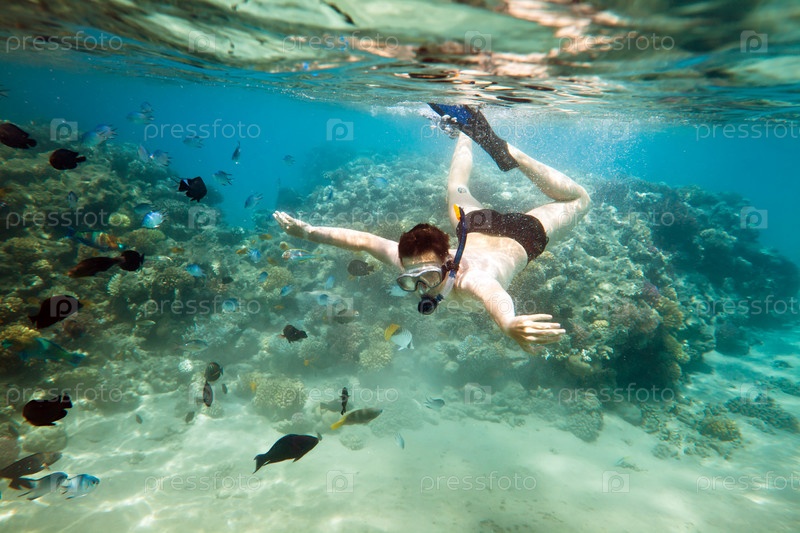 Молодой человек занимается дайвингом