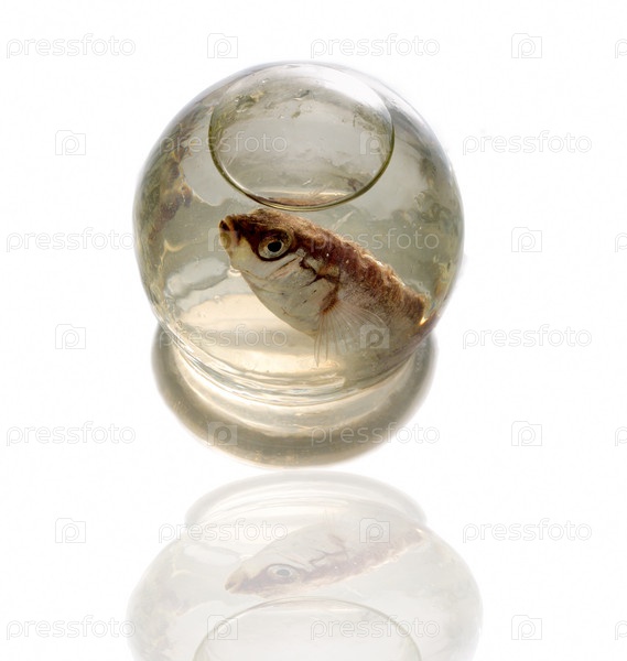 Рыба в стеклянном шаре на белом фоне