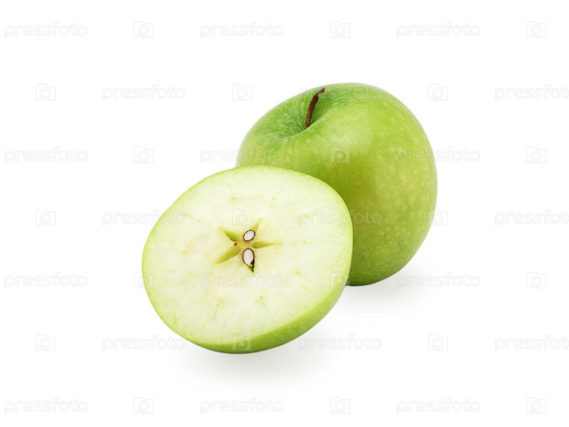 Зеленое яблоко и половина зеленого яблони изолированы на белом фоне