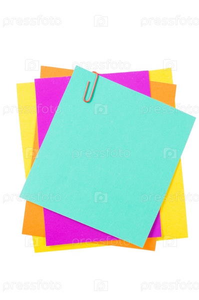 Цветная бумага со скрепкой, изолирована на белом