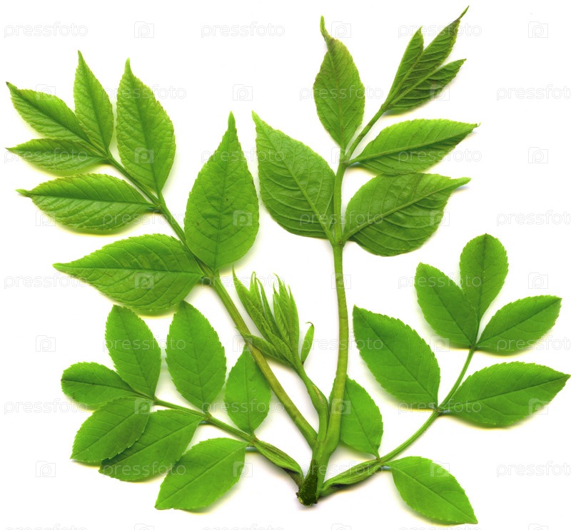 Веточка с зелеными листьями на белом фоне