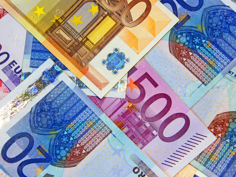 Купюры евро крупным планом