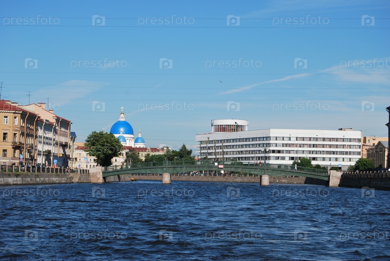 Мост через городскую реку и дома на набережной