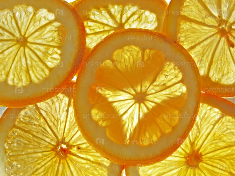 Просвечивающие дольки лимонов крупным планом