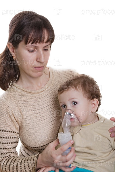 Мама надевает на ребенка маску для ингаляции